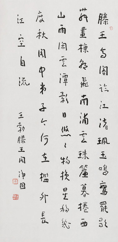 張德林書法對(duì)以上兩者進(jìn)行了巧妙地取舍和融合。他前些年書法以黃庭堅(jiān)一路大草和魏晉風(fēng)格的小楷為主,草書飛動(dòng)張揚(yáng),點(diǎn)畫精到,氣勢(shì)磅礴,很富有藝術(shù)感染力。小楷靜穆平和而不顯板滯,字里行間蘊(yùn)含著很多細(xì)微的變化。無論是大幅還是小品,都注重內(nèi)在的精神氣質(zhì)的充分表達(dá),而不是僅從外在形式上去驚世駭俗。他近年來越來越注重含蓄和內(nèi)斂的東西,因此,反映到書法上,他逐漸舍棄那些過于張揚(yáng)外露的因素,把二王、顏真卿、黃庭堅(jiān)和八大山人、弘一法師等人書法當(dāng)中的那些含蓄而內(nèi)斂的因素自然而然充分融合,形成了自己獨(dú)特的藝術(shù)風(fēng)格。他這種風(fēng)格最大的特點(diǎn)就是線條凝練而不浮滑,點(diǎn)畫精到而富于變化,章法渾融而不顯板滯,氣息古雅而耐人品讀。