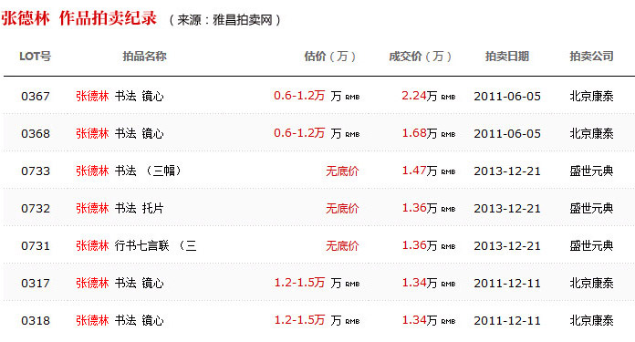 拍賣紀(jì)錄(數(shù)據(jù)來源:雅昌拍賣網(wǎng))