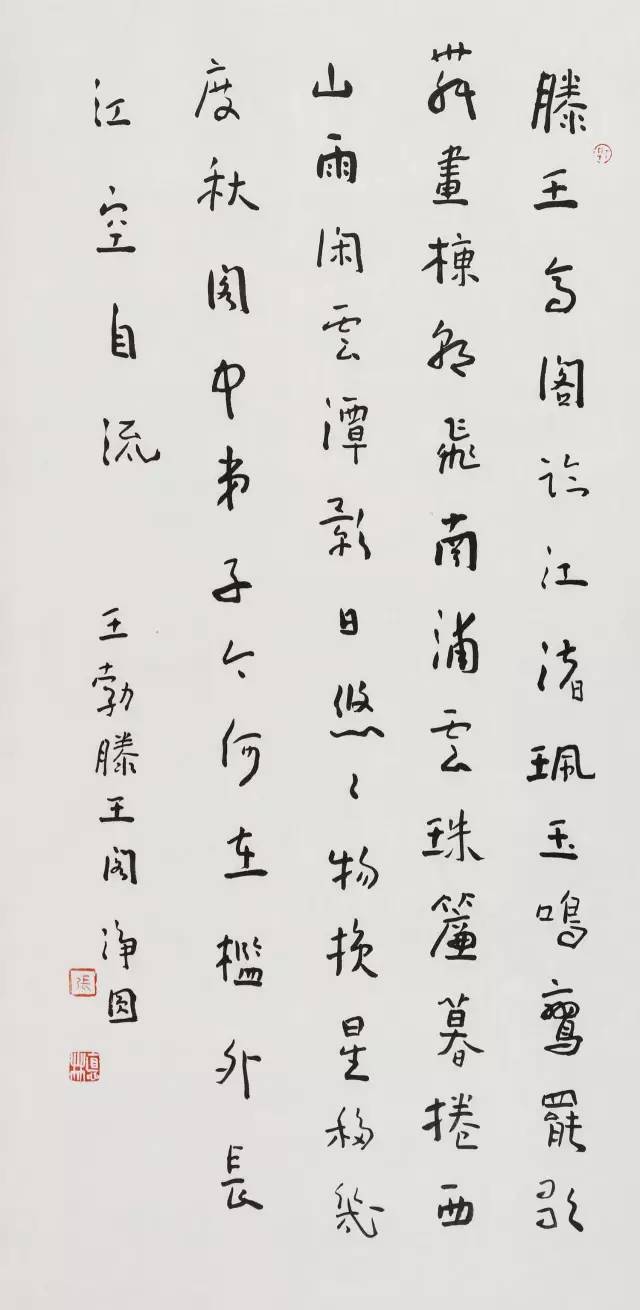 德林學(xué)書,路徑廣博,取法正大。由趙字立基,上追二王,并兼采黃山谷之縱肆,參漢隸碑版之厚重寬博……德林近年之書作,頗有獨特旨趣,摒棄繁華,一歸平淡,追求古樸冷逸,頗有八大、弘一等佛家書法之趣味。當(dāng)代學(xué)傳統(tǒng)書法者,每多泥古之輩,德林由傳統(tǒng)法帖而明古人法理,融合自我之心性,推陳出新,出獨特之格調(diào)面目,此誠難能可貴者也。比之書壇各類展覽中,千人一面之所謂傳統(tǒng)書風(fēng),覺德林之書作,愈加清奇可愛也。德林書作,線質(zhì)蒼古,下筆有屋漏痕、印印泥之妙,用墨尤見精神,結(jié)字亦于古法之中,亦每有新意,其書風(fēng)已相當(dāng)成熟。