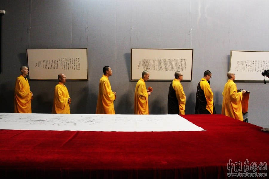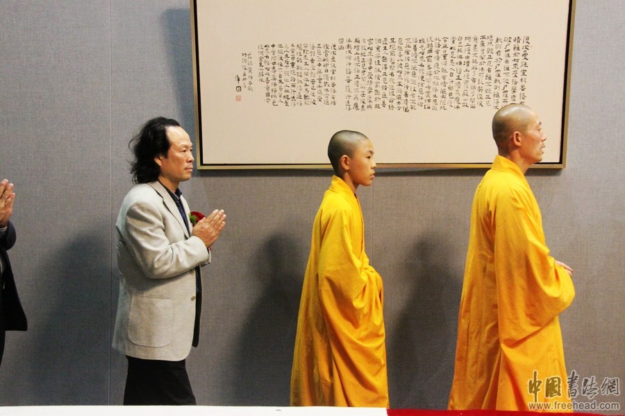 開幕式由《中國書畫博覽》主編馬漢躍主持。開幕式上舉行了祈福灑凈儀式,張德林同時還將他書寫的巨幅楷書作品《心經(jīng)》捐贈給北京佑勝教寺。