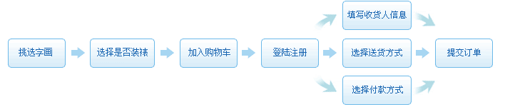 查看裝裱說明),然后點(diǎn)擊立即購買按鈕,加入購物車。如果您還想購買其他感興趣的商品,在購物車中點(diǎn)擊"繼續(xù)購物"或者進(jìn)入其他頁面、搜索商品繼續(xù)購買。把想要購買的商品都放入購物車中,最后一起結(jié)算。