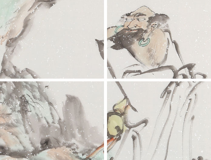 曹建濤先生是一個喜歡佛教和道教文化的人,佛禪學歷深厚,“道”從“無”中創(chuàng)造并主宰世界,本非凡俗中人可窺堂奧。然佛自人來,禪在妙悟。他的畫筆之下充滿 著智慧與機趣的禪意?!队^音》、《佛陀》、《高士》等系列畫作的人物畫氣韻生動,形神兼?zhèn)?,人物形象刻畫的傳神,且筆墨揮灑自如,體現(xiàn)了作者很高的藝術(shù)水 準。