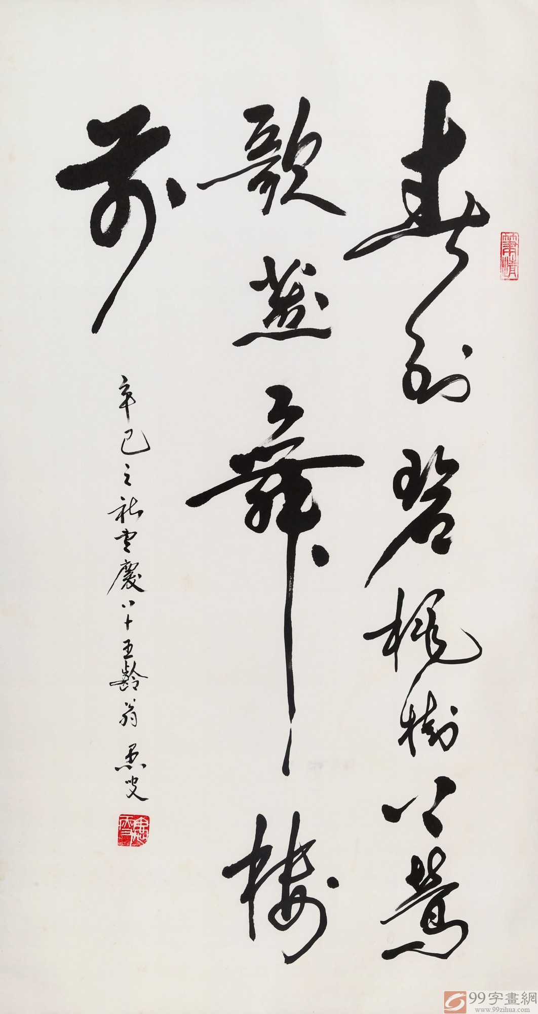 一生輾轉(zhuǎn)艱辛、鐵肩道義、妙手文章,視金錢、富貴如糞土;而今,年逾九旬,白須美髯、鶴發(fā)童顏,仍身兼二十余個權(quán)威藝術(shù)機構(gòu)高級職務(wù);頻頻應(yīng)邀來往于全國各地進(jìn)行藝術(shù)交流。仍不忘心系大愛,廣博慈善。