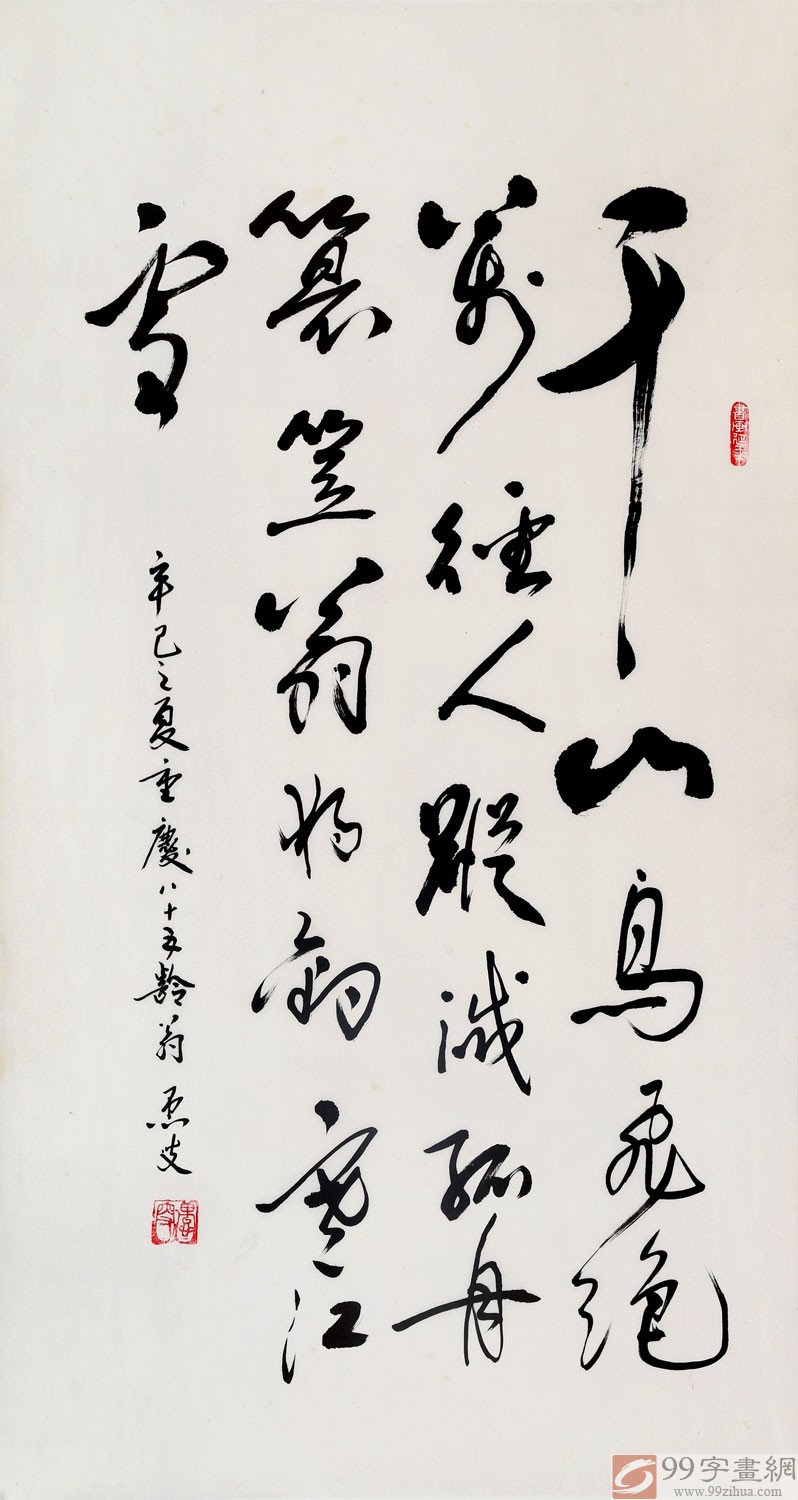 千山鳥飛絕,萬徑人蹤滅。孤舟蓑笠翁,獨釣寒江雪。