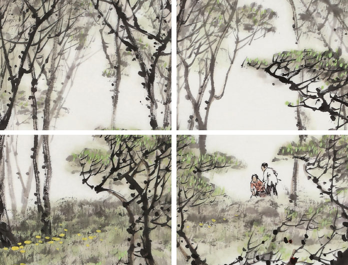 鄒本財?shù)纳剿嬕詫Υ笞匀坏莫毜揭娊?,樹立了自己“清秀”的畫風,作畫尤精墨法,在水墨之中略施淡彩,以飽滿的熱情和對大自然獨特的感悟繪出了山川大河的神韻。