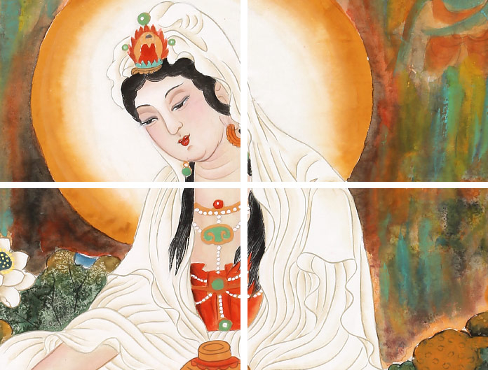 【作品簡評】 家中供奉佛像之十大利益:1. 從前所作種種罪過。輕者立即消滅,重者亦得轉(zhuǎn)輕。 2. 常得吉神擁護,一切瘟疫、水火、寇盜、刀兵、牢獄之災(zāi),悉皆不受。 3. 夙生怨對,咸蒙法益,而得解脫,永免尋仇報復(fù)之苦。 4. 夜叉惡鬼,不能侵犯,毒蛇餓鬼,不能為害。 5. 心得安慰,日無險事,夜無惡夢,顏色光澤,氣力充盛,所作吉利。 6. 至心奉法,雖無希求,自然衣食豐足,家庭和睦,福祿緜長。 7. 所言所行,人天歡喜。任到何方,常為多眾傾誠愛戴,恭敬禮拜。 8. 愚者轉(zhuǎn)智,病者轉(zhuǎn)健,困者轉(zhuǎn)亨,為婦女者,報謝之日,捷轉(zhuǎn)男身。 9. 永離惡道,受生善道。相貌端正,天資超越,福祿殊勝。 10.能為一切眾生,種植善根。以眾生心,作大福田,獲無量勝果所生之處,常得見佛聞法。直至三慧宏開,六通親證,速得成佛。 印造經(jīng)像,即有如此殊勝功德,故凡遇祝壽、賀喜、免災(zāi)、祈求、懺悔、薦拔之時,皆宜歡喜施舍,勢力行之。