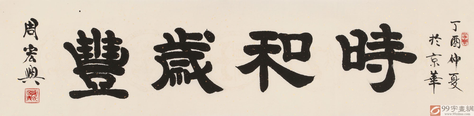 周宏興教授自幼酷愛書法藝術(shù),多年潛心研究與學(xué)習(xí)漢隸名碑,汲取眾家之長(zhǎng),周宏興逐漸形成了自己的凝重,古樸高標(biāo)逸韻的風(fēng)格,可謂典型的“文人書法”。近年來經(jīng)過苦心鉆研,先生又以指代筆,創(chuàng)造了“隸體指書”新書體。被專家譽(yù)為“中國(guó)隸體指書第一人,開創(chuàng)書法審美新天地”。 2004年9月29日晚,周先生應(yīng)國(guó)家副主席曾慶紅之邀參加了在首都人民大會(huì)堂舉行的中秋國(guó)慶招待會(huì),同時(shí)他在人民大會(huì)堂澳門廳向佳賓們展示其隸體指書長(zhǎng)卷蘇東坡《水調(diào)歌頭》,引起與會(huì)者極大震驚。 周宏興教授的書法藝術(shù)受到海內(nèi)外廣泛的關(guān)注。他曾四次赴日本舉行書法展和講學(xué)。其作品被我國(guó)和日本,韓國(guó),美國(guó),英國(guó),印度,加拿大,馬來西亞等眾多的國(guó)際友人珍藏,數(shù)百家藝術(shù)館,博物館和報(bào)刊雜志收藏和刊登,并刻石于北京,山東,云南,廣東,安徽,浙江等地,中南海和全國(guó)政協(xié)禮堂均收藏了他的巨幅書法作品,我國(guó)黨和國(guó)家一些領(lǐng)導(dǎo)人,美國(guó)前總統(tǒng)布什,國(guó)務(wù)卿奧爾布賴特,希拉里等均收藏了他的隸書或隸體指書作品。