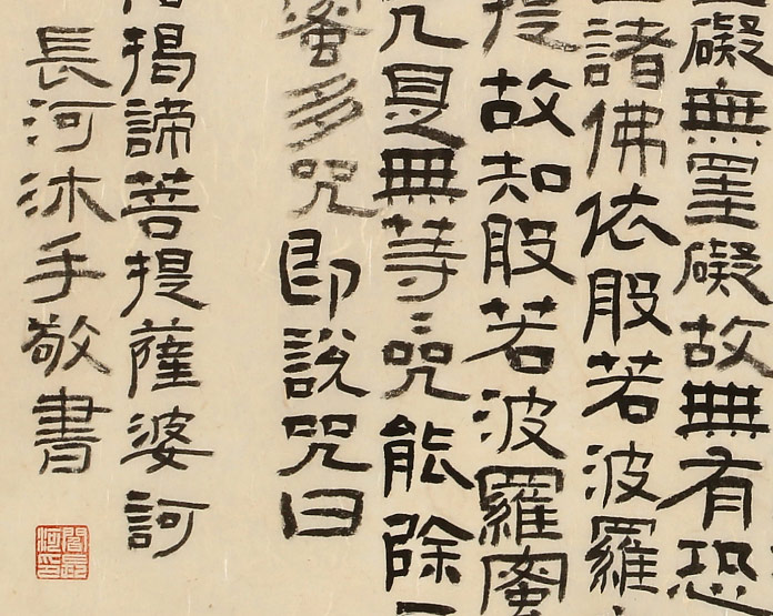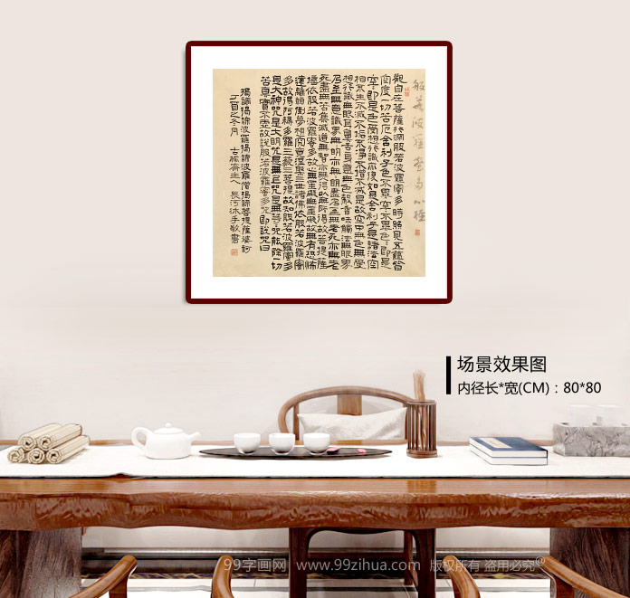 《般若波羅蜜多心經(jīng)》簡(jiǎn)稱(chēng)《心經(jīng)》,是佛教大乘經(jīng)典中最短的一部經(jīng)典。家中懸掛此經(jīng),贊助,流通,見(jiàn)聞,隨喜者,依佛菩薩威得力,消除一切罪障,?;蹞?jù)足,常得安樂(lè),無(wú)諸病苦,家門(mén)情吉,身心安康。