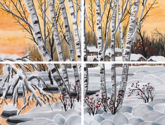 何一鳴 四尺三開《霞光映雪》 冰雪畫派畫家 師從于志學(xué)