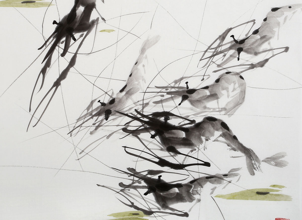 孫海峰的鯉魚畫;以魚為師,得形入神。他的作品以工筆和寫意相間,筆墨勁挺流暢,色彩明潔秀麗。其畫的魚靈動活潑,栩栩如生,神韻充盈,筆墨老到。取材來自于生活卻又超越生活。大膽概括簡化,純墨色的構(gòu)圖也有著豐富的意境,顯示出畫家高超的藝術(shù)功力。