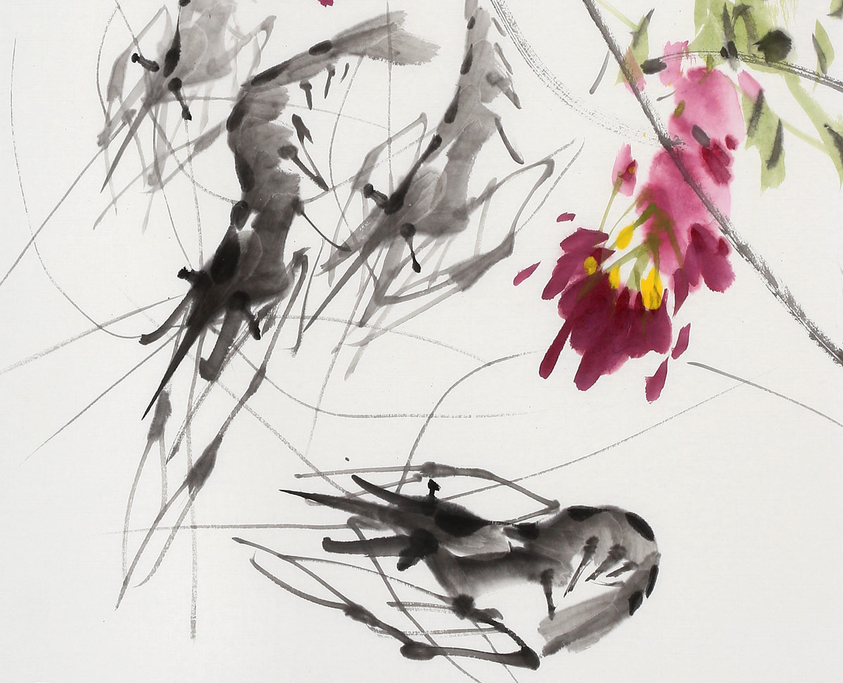 孫海峰的鯉魚畫;以魚為師,得形入神。他的作品以工筆和寫意相間,筆墨勁挺流暢,色彩明潔秀麗。其畫的魚靈動活潑,栩栩如生,神韻充盈,筆墨老到。取材來自于生活卻又超越生活。大膽概括簡化,純墨色的構(gòu)圖也有著豐富的意境,顯示出畫家高超的藝術(shù)功力。