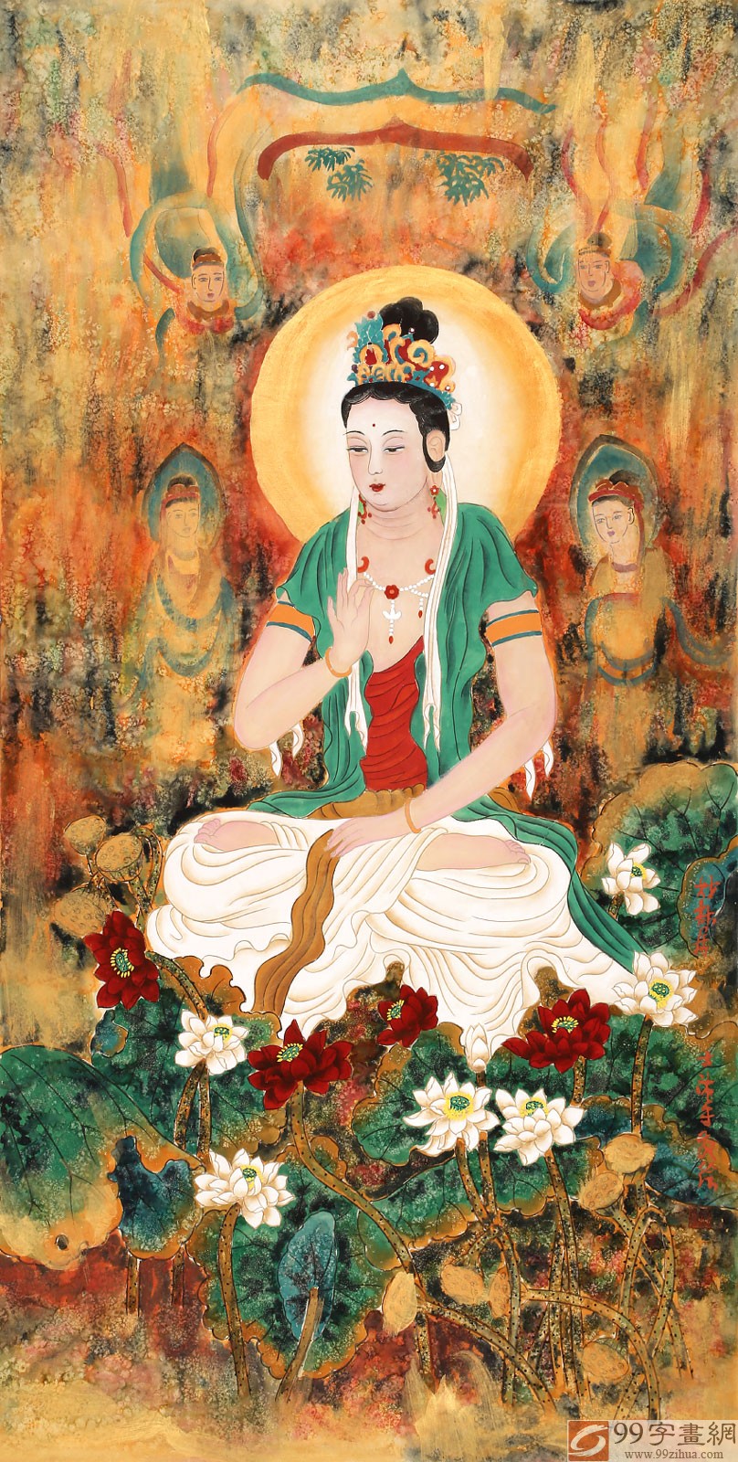 【作品簡評】 家中供奉佛像之十大利益:1. 從前所作種種罪過。輕者立即消滅,重者亦得轉輕。 2. 常得吉神擁護,一切瘟疫、水火、寇盜、刀兵、牢獄之災,悉皆不受。 3. 夙生怨對,咸蒙法益,而得解脫,永免尋仇報復之苦。 4. 夜叉惡鬼,不能侵犯,毒蛇餓鬼,不能為害。 5. 心得安慰,日無險事,夜無惡夢,顏色光澤,氣力充盛,所作吉利。 6. 至心奉法,雖無希求,自然衣食豐足,家庭和睦,福祿緜長。 7. 所言所行,人天歡喜。任到何方,常為多眾傾誠愛戴,恭敬禮拜。 8. 愚者轉智,病者轉健,困者轉亨,為婦女者,報謝之日,捷轉男身。 9. 永離惡道,受生善道。相貌端正,天資超越,福祿殊勝。 10.能為一切眾生,種植善根。以眾生心,作大福田,獲無量勝果所生之處,常得見佛聞法。直至三慧宏開,六通親證,速得成佛。 印造經(jīng)像,即有如此殊勝功德,故凡遇祝壽、賀喜、免災、祈求、懺悔、薦拔之時,皆宜歡喜施舍,勢力行之。