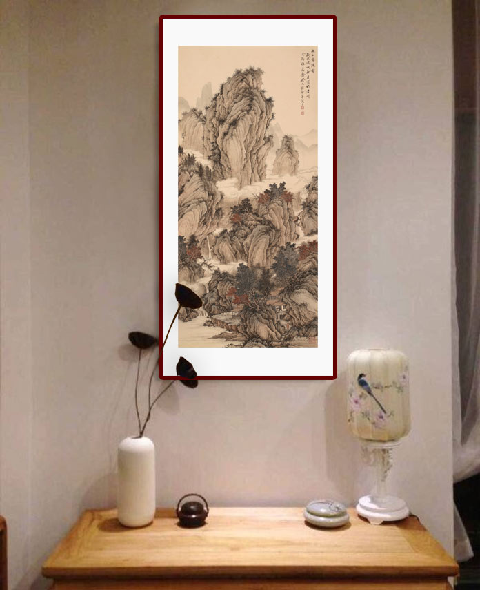 吳顯剛所作山水勾勒精調(diào),刻畫嚴(yán)謹(jǐn),古意橫生。主要以積墨為之,層層遞加。墨法干濕并用,凝重恬靜,變化莫測。古人有云:“山水有法,豈能草草?!边@也是吳顯剛的座右銘。所以他主張:“入古法取其精,近生活畫其神。以繪畫態(tài)度說話,以作品的質(zhì)量說話,不吹牛,多讀書才是一位真正合格的畫家。”