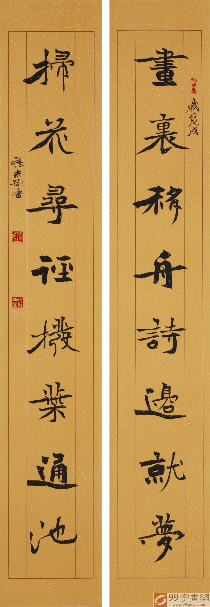 對聯(lián)內(nèi)容為:厚德于人煙消云散 微恩及己刻骨銘心。張志剛,天津著名書法家,師從北碑巨匠孫伯翔先生,書風(fēng)險(xiǎn)峻多姿、勁拔剛健,具有極高的欣賞和收藏價(jià)值。
