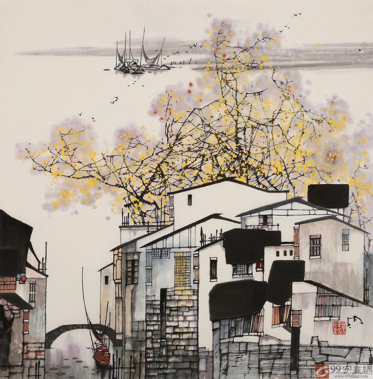 【作品簡(jiǎn)評(píng)】苗雨的繪畫(huà)吸收了石濤、八大、以及當(dāng)代吳冠中等大家的畫(huà)法并借為己用,他的筆墨潑辣大氣,大開(kāi)大合,元?dú)饬芾?,但又絕無(wú)江湖縱橫習(xí)氣,收放有度,苗雨巧用了宋人繪畫(huà)筆法的細(xì)致,使得他筆下的山水或花鳥(niǎo)充滿著祥和和寧?kù)o,又充滿了生命的張力。他大膽融進(jìn)西方油畫(huà)的技法,特別是在用色方面有著他獨(dú)到的見(jiàn)解,從而使整個(gè)畫(huà)面有一種朦朧、迷離的效果,把中西方繪畫(huà)技藝巧妙的結(jié)合起來(lái),形成了自己獨(dú)特的藝術(shù)風(fēng)格。
