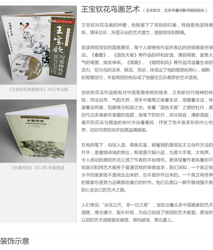 2012年11月,人民郵電出版社出版《國(guó)畫名師指導(dǎo)——王寶欽寫意畫技法》,同年,天津楊柳青出版社出版《中國(guó)畫名家技法叢書》,并均在全國(guó)各地書店公開發(fā)行。