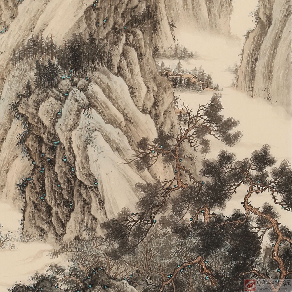 吳顯剛所作山水勾勒精調(diào),刻畫嚴(yán)謹(jǐn),古意橫生。主要以積墨為之,層層遞加。墨法干濕并用,凝重恬靜,變化莫測。古人有云:“山水有法,豈能草草。”這也是吳顯剛的座右銘。所以他主張:“入古法取其精,近生活畫其神。以繪畫態(tài)度說話,以作品的質(zhì)量說話,不吹牛,多讀書才是一位真正合格的畫家?!?/p>