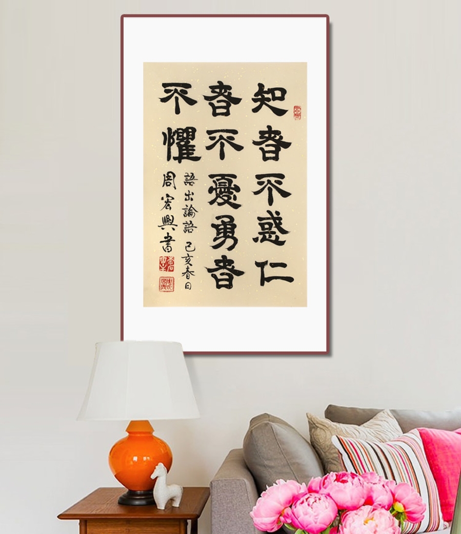 周宏興教授自幼酷愛書法藝術(shù),多年潛心研究與學(xué)習(xí)漢隸名碑,汲取眾家之長,周宏興逐漸形成了自己的凝重,古樸高標逸韻的風(fēng)格,可謂典型的“文人書法”。近年來經(jīng)過苦心鉆研,先生又以指代筆,創(chuàng)造了“隸體指書”新書體。被專家譽為“中國隸體指書第一人,開創(chuàng)書法審美新天地”。 2004年9月29日晚,周先生應(yīng)國家副主席曾慶紅之邀參加了在首都人民大會堂舉行的中秋國慶招待會,同時他在人民大會堂澳門廳向佳賓們展示其隸體指書長卷蘇東坡《水調(diào)歌頭》,引起與會者極大震驚。 周宏興教授的書法藝術(shù)受到海內(nèi)外廣泛的關(guān)注。他曾四次赴日本舉行書法展和講學(xué)。其作品被我國和日本,韓國,美國,英國,印度,加拿大,馬來西亞等眾多的國際友人珍藏,數(shù)百家藝術(shù)館,博物館和報刊雜志收藏和刊登,并刻石于北京,山東,云南,廣東,安徽,浙江等地,中南海和全國政協(xié)禮堂均收藏了他的巨幅書法作品,我國黨和國家一些領(lǐng)導(dǎo)人,美國前總統(tǒng)布什,國務(wù)卿奧爾布賴特,希拉里等均收藏了他的隸書或隸體指書作品。