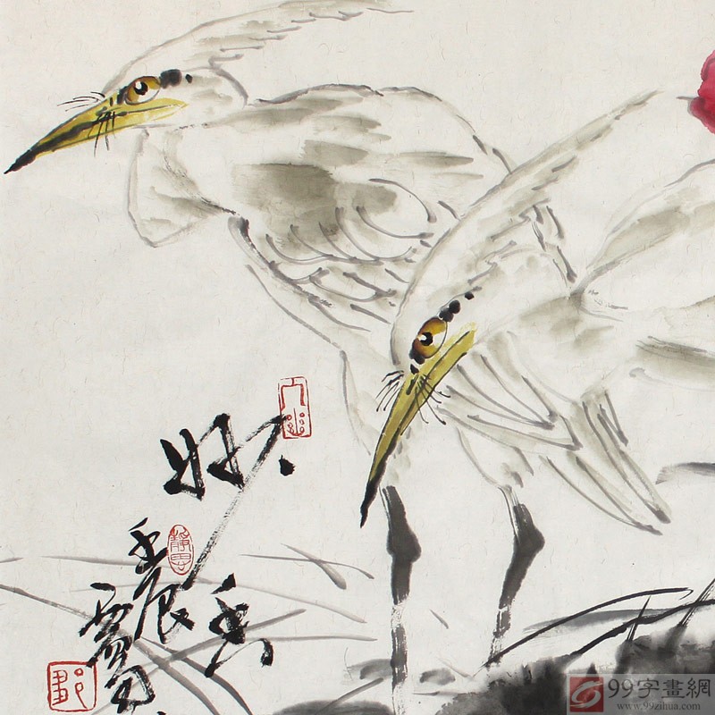 其繪畫崇尚自然和諧之美,追求天人合一,妙境逸品,善于采擷大自然中最生動、最有生命力的東西加以刻畫表現(xiàn),并將自然界中的花草、 禽鳥、 魚蟲在思維中集中強化,使其更突出典型,讓畫面給人以更多的聯(lián)想空間。其用筆追求大開大合,酣暢淋漓。