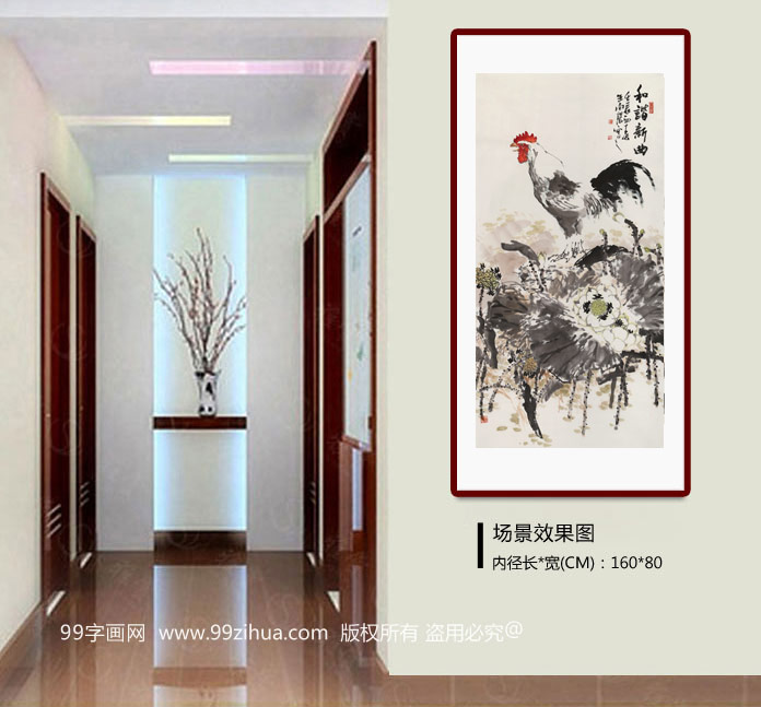 【作品簡評】 近年來,王向陽先生的水墨動物畫廣受好評,他的水墨動物畫尊崇自然、親近自然、融入自然,將水墨的靈韻與心靈的詩情很好地調(diào)適成精美多姿的畫面。他不是詩人,平素連話語都很節(jié)省,所有的詠嘆全都投入到筆墨中。細(xì)細(xì)品味他拙而不滯、枯中含潤的筆蹤墨痕,他在“百美咸備,流派紛呈”的畫壇上,堅(jiān)持作遠(yuǎn)離塵囂的苦學(xué)之人、苦旅之人,以自己獨(dú)備一格的理智與激情尋求著與美的理想、美的精神、美的夢幻更深的契合。隨畫贈送由天津人民美術(shù)出版社 出版的《王向陽畫雞作品集》一書。