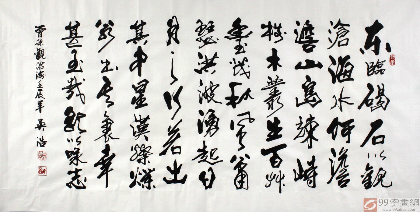吳浩先生書法眾體兼?zhèn)?,功力濃厚,尤以行楷見長(zhǎng),其行楷清新俊逸,剛健樸實(shí),筆圓勢(shì)方,動(dòng)靜相依,錯(cuò)落有致,氣韻生動(dòng),汲取了唐碑風(fēng)骨, 魏晉神韻,寓剛健于婀娜之中,寄雄強(qiáng)于委婉之內(nèi),在博涉諸家的基礎(chǔ)上形成氣勢(shì)渾厚,蒼勁挺拔的獨(dú)特風(fēng)格,吳浩先生書如其人,堅(jiān)忍不拔,風(fēng)格高尚,對(duì)創(chuàng)作態(tài) 度十分嚴(yán)謹(jǐn),書作力求精美,作品幾經(jīng)推敲方能成稿。