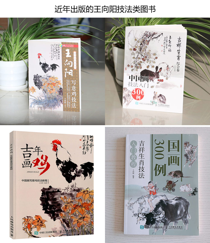 出版有《王向陽畫雞作品集》、《王向陽花鳥畫集》、《王向陽水墨動物畫作品選》《國畫名師指導王向陽寫意雞技法》《吉年畫雞-中國畫寫意雞技法教程》、《 中國畫技法入門300例-吉祥生肖綜合卷》等多本專集。