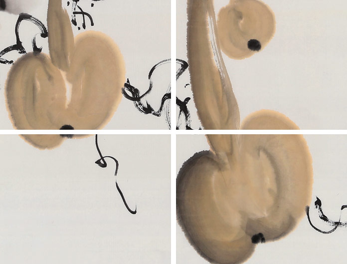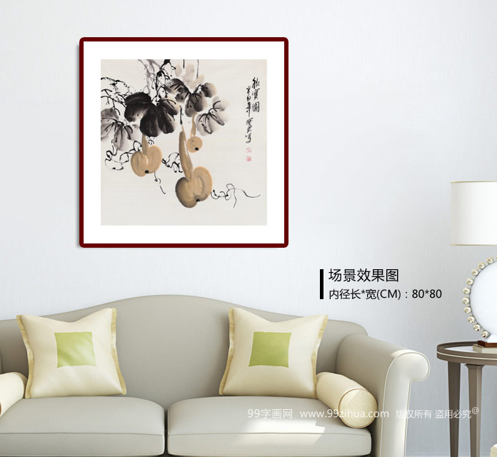 【作品簡評】葫蘆的音與“福祿”相近,而它的外形圓滾有曲線,看來相當(dāng)福氣,加上入口小、肚量大的特色,仿佛能夠廣吸金銀珠寶。掛在財位上或者掛在對門口的墻上,葫蘆納進(jìn)了財富,就不易外流,守財聚富。作品《秋實(shí)圖》王老師以墨色畫藤葉,下方繪制三個葫蘆,寓意一家三口,和和美美。掛在家里非常吉利。