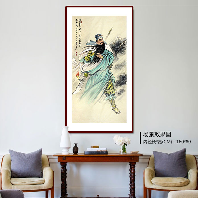 【作品簡評】(99字畫網(wǎng)藝術(shù)評論員玉潔)千百年來,關(guān)公集忠孝節(jié)義于一身,在人們心目中賞有很高的地位,他勇猛、講義氣、忠貞不二的形象已經(jīng)是不可改變的了,這是因為他早已具備了被神化的條件。這幅《浩然正氣傳千古》關(guān)公人物畫作品,長面如棗,眉若蠶,綠袍金鎧,提青龍刀,頗有雄風霸氣,作品是多么的震撼,讓關(guān)公的威武形象深入人心。趙金鸰老師的關(guān)公畫作品寓意守財,辟邪,防小人,講義氣,重情義,非常適合懸掛在辦公室或家中。他不僅是封建統(tǒng)治階級對關(guān)公褒揚喝彩、忠孝節(jié)義的產(chǎn)物,更是百姓精神生活的需要,使關(guān)公的信仰在不太長的歷史時間里蓬勃發(fā)展。