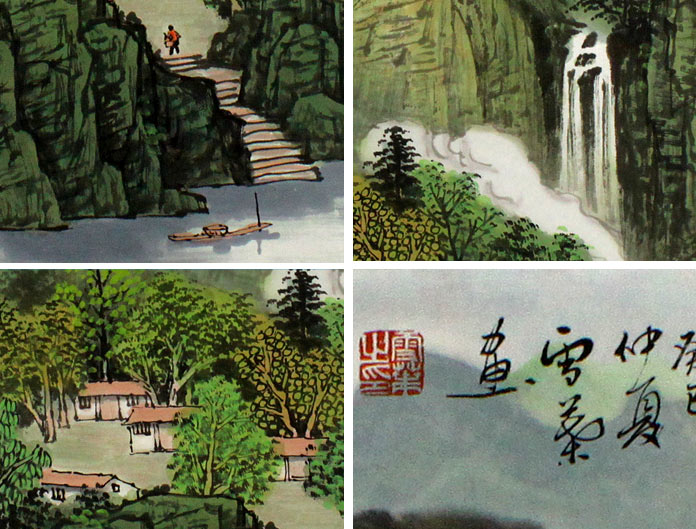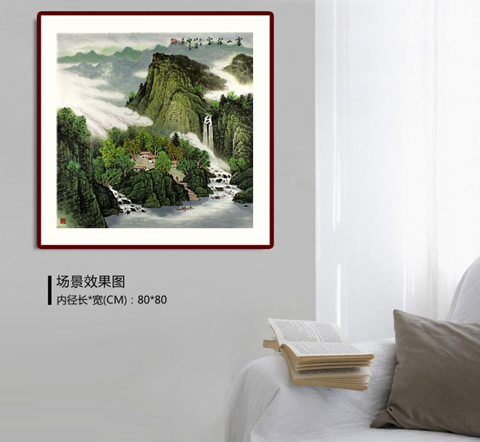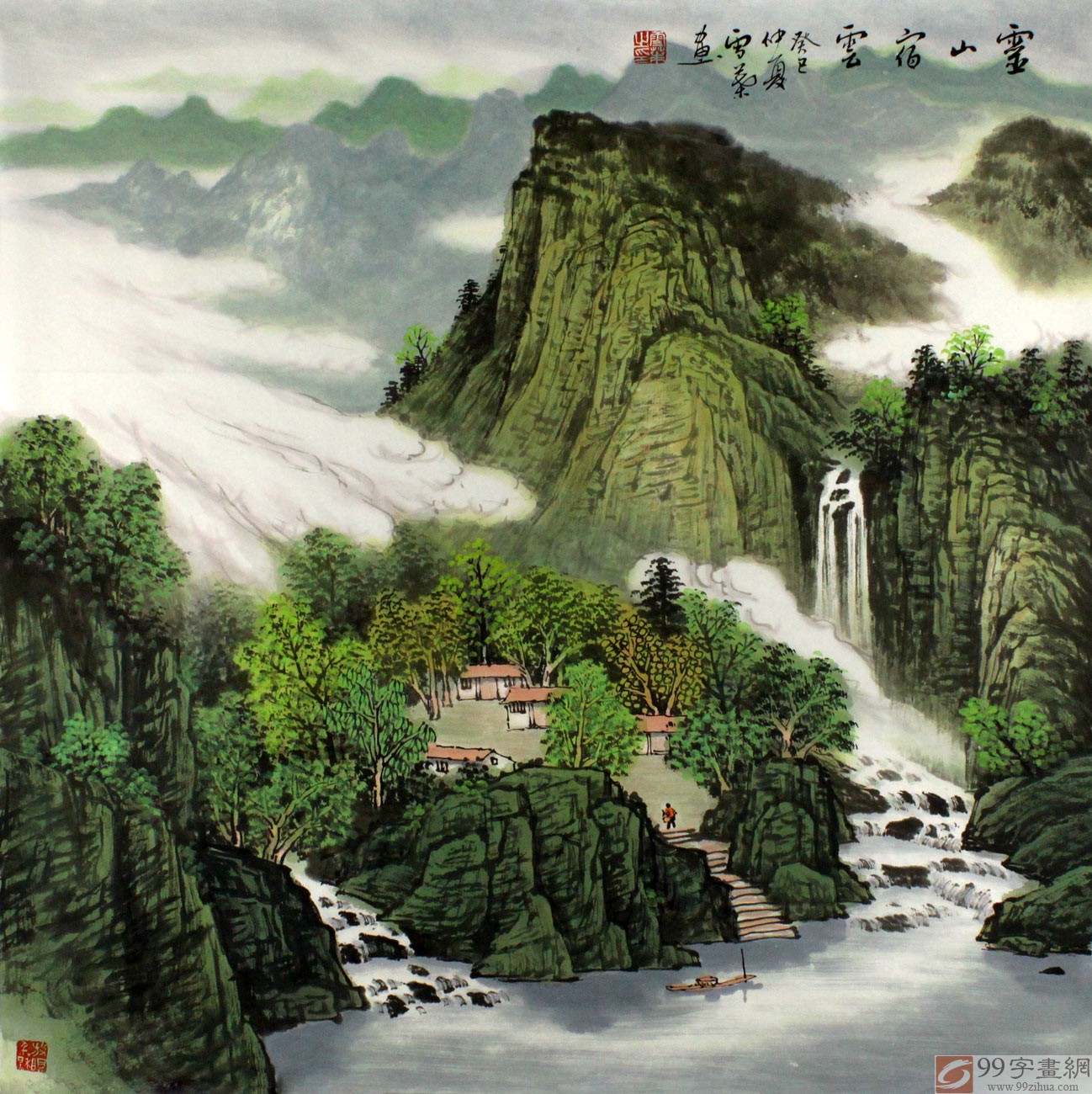 【作品簡評】(99字畫網(wǎng)藝術(shù)評論員路豐)何華賢老師筆下的這幅寫意山水畫《靈山宿云》,群峰突起,山勢險峻,房舍幾間,草木澤生,煙云彌漫,瀑布從山澗飛流直下,帆船緩緩駕駛,民居提水準(zhǔn)備做飯,一片溫情深入畫中,整幅畫卷洋溢著盎然生機(jī),郁郁蔥蔥,將山水畫的地理風(fēng)水元素有機(jī)融入其中,既敞開又含蓄,既含蓄又直露,適合家居書房、玄關(guān)、走廊懸掛裝飾!