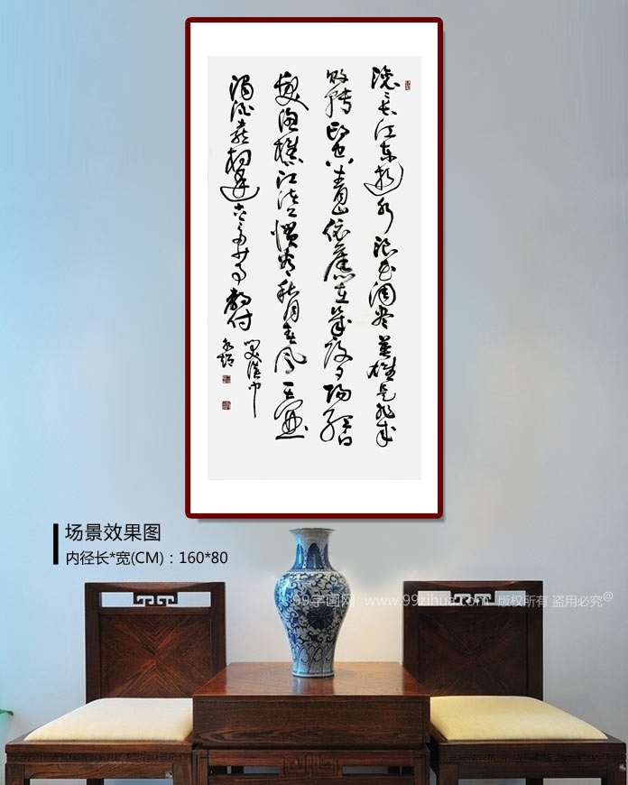 【作品簡評】(99字畫網(wǎng)藝術(shù)評論員靈嫣) 于水超先生筆下的行草書法作品《滾滾長江東逝水》,墨色沉著,變化豐富自然,筆勢宏偉,奔放飛動,一氣呵成,具有強烈的彈性感和韻律美,作者充分將自己的情感抒發(fā)于字里行間,豪放中帶著含蓄,高亢中帶著深沉,正是寫出了這首詞所要表達的情感,充分體現(xiàn)了作者淡泊名利的思想。此幅書法作品可掛于書房或辦公室,渲染空間濃厚的文化氣氛。