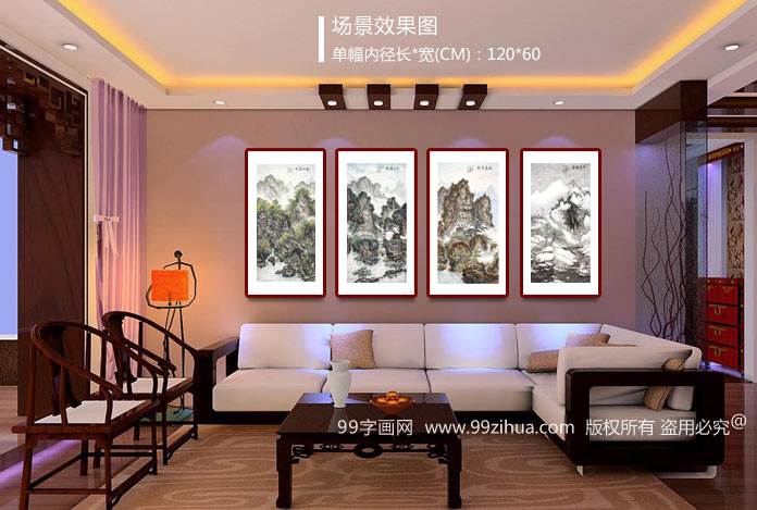 【作品簡評】 (99字畫網(wǎng)藝術評論員曉曼)蒲家瑞先生的山水畫四條屏分別以春、夏、秋、冬四季景色入畫。春天萬物復蘇,草木叢生;夏天流水清澈,綠樹成蔭,夏山如碧;秋天金桂飄香,秋高氣爽,秋風落葉,蕭瑟宜人;冬天瑞雪紛飛,銀裝素裹,給萬物穿上了厚厚的棉衣......一幅四季景色躍然畫幅中,構圖巧妙,意境深遠,大氣磅礴,將大自然的四季景色形象逼真地繪制畫幅中,是辦公室字畫、客廳字畫之必選,鄭重推薦大家選購!