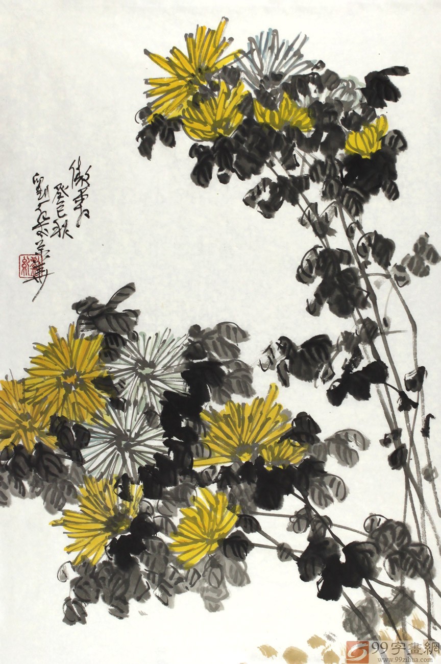 【作品簡(jiǎn)評(píng)】 (99字畫網(wǎng)藝術(shù)評(píng)論員曉曼) 劉紀(jì)先生的這幅金色菊花圖《傲霜》,凌霜傲雪,不為嚴(yán)寒所屈服,它金蕊銀花,爭(zhēng)奇斗艷默默地開放著。此幅花鳥畫作品《傲霜》花朵碩大飄香,芳香濃郁,莖蔓富含生機(jī),仍舊向上生長(zhǎng),是氣節(jié)的象征,在晉代陶淵明詩(shī)句中有“采菊東籬下,悠然見南山”的千古名句,贊譽(yù)菊花的品質(zhì)高潔,是書房字畫、辦公室字畫之選,推薦選購(gòu)!