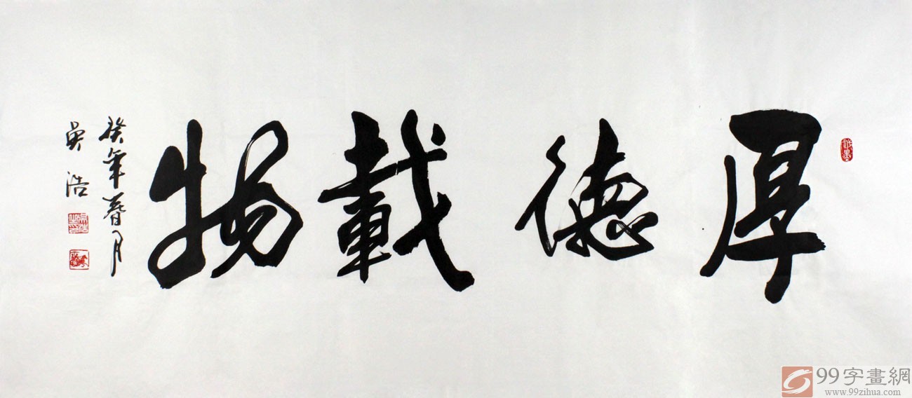 【作品簡評】(99字畫網藝術評論員玉潔)“厚德載物”出自《周易》中的卦辭:“天行健,君子以自強不息;地勢坤,君子以厚德載物”。意思是天(即自然)的運動剛強勁健,相應于此,君子應剛毅堅卓,憤發(fā)圖強;大地的氣勢厚實和順,君子應增厚美德,容載萬物。吳浩先生借此書法作品來勸誡后人要奮發(fā)向上,努力進取,是如今辦公室字畫、書房字畫之選,鄭重推薦選購!