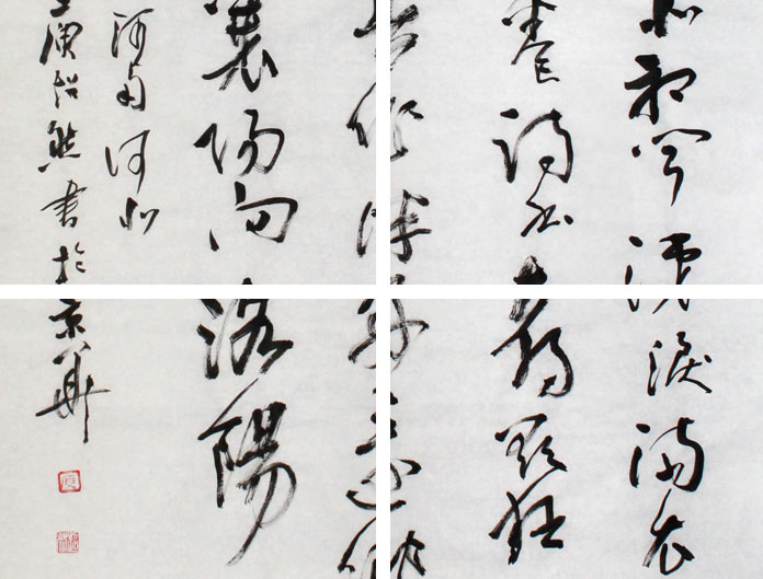 【作品簡評】 庾超然先生的這幅書法作品《劍外忽傳收薊北》運用酣暢淋漓的筆墨流露出作者博大的胸懷和英雄氣概,他的書法作品筆法流動自然,字里行間散發(fā)著獨特的藝術(shù)魅力,讓人觀之有一種如虹的氣勢,而這種氣勢恰如杜甫詩詞所要表達(dá)出的意境,真可謂是異曲同工之妙。