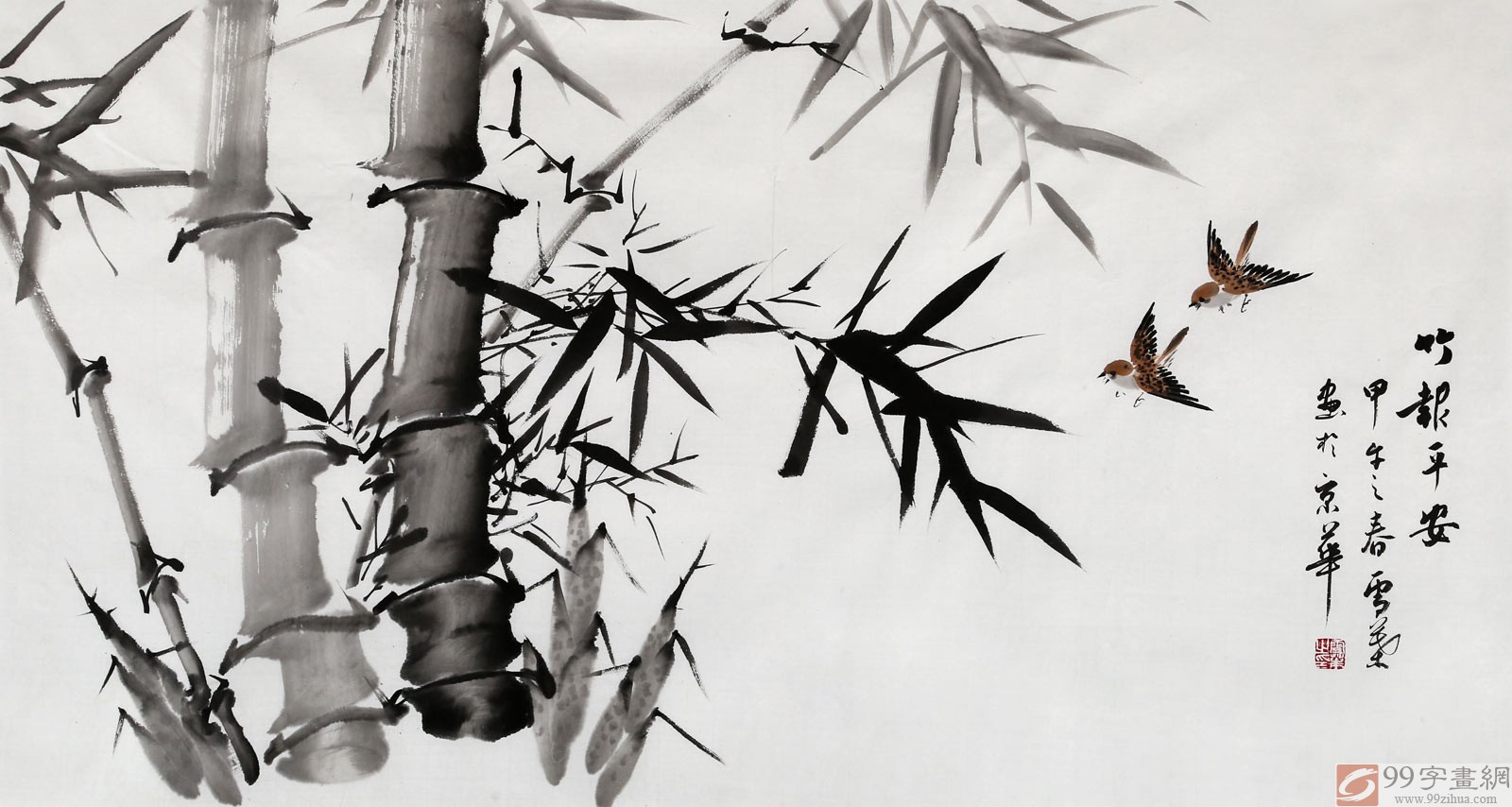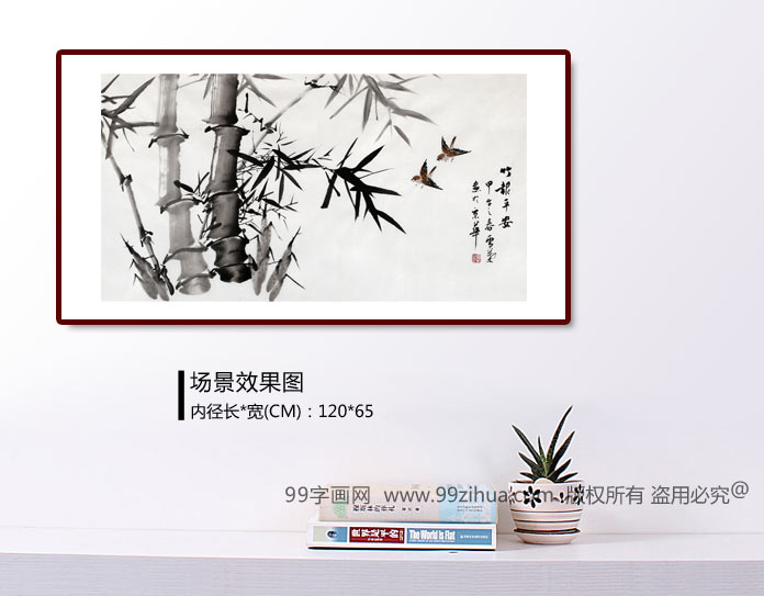 【作品簡(jiǎn)評(píng)】(99字畫網(wǎng)藝術(shù)評(píng)論員路豐)竹子自古以來(lái)就被人們敬仰和偏愛,大部分人喜歡在房屋中懸掛一幅竹子圖;一來(lái)裝飾家居;二來(lái)還可激勵(lì)和鼓舞主人要學(xué)竹子頑強(qiáng)的品格。中國(guó)悠久的歷史和文化賦予許多生物以人的靈性,松、竹、梅被稱為“歲寒三友”?!懊诽m竹菊”喻為“四君子”。 謙虛謹(jǐn)慎是竹的品格,堅(jiān)韌不屈是竹的氣節(jié),無(wú)私奉獻(xiàn)是竹的風(fēng)骨,高風(fēng)亮節(jié)是竹的靈魂。