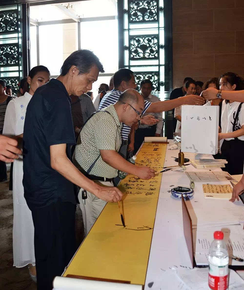 全國政協(xié)第十一屆委員會副主席厲無畏,全國政協(xié)常委、九三學社中央常務副主席邵鴻,全國人大常委、全國人大華僑委員會副主任楊邦杰,全國人大常委、民盟中央副主席張平,中國文聯(lián)副主席楊承志,中將中國海軍原副政委王登平,原蘭州軍區(qū)副司令員關(guān)凱中將,原國家物資部副部長桓玉珊,中宣部原秘書長官景輝,中國書法家協(xié)會顧問王家新,中國書法家協(xié)會顧問胡抗美,中國書法家協(xié)會副主席劉洪彪,中國國家畫院副院長、書法篆刻院執(zhí)行院長曾來德,中國藝術(shù)研究院博導張榮慶等,以及來自社會各界的領(lǐng)導和朋友等上千人出席了開幕式。