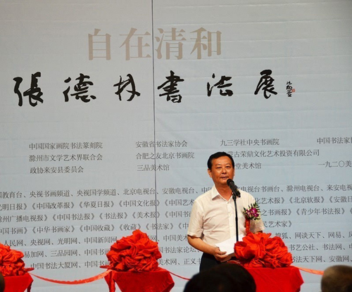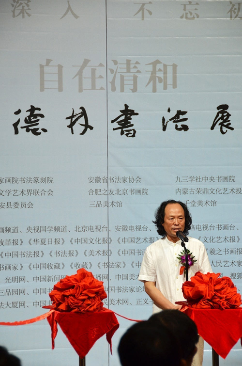 開幕式上,全國政協(xié)常委、九三學社中央常務副主席邵鴻先生,中國國家畫院副院長、書法篆刻院執(zhí)行院長曾來德先生,安徽省滁州市政協(xié)主席何希勇先生,來安縣人民政府縣長鄧繼敢先生等分別講話,對張德林先生“不忘初心、一門深入”的藝術(shù)精神給予了高度評價,對德林先生“中直秉正、虔誠率真”的人格充分肯定,并稱贊本次展覽為具有“清和”之風、“純粹”之技和“載道”之體的一次高水平的藝術(shù)活動。
