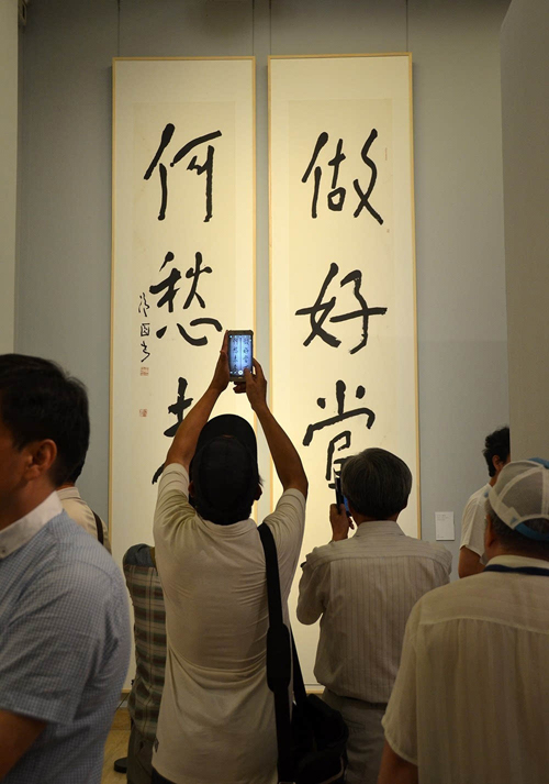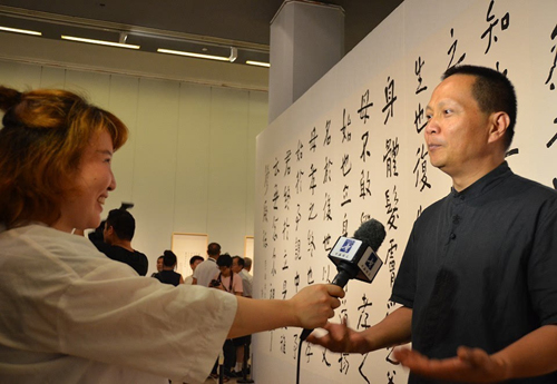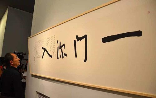 本次展出的40余幅書法精品,從“一門深入”緣起,到“不忘初心”的自我回望,既有丈二榜書,亦有盈尺小字,皆為先生實踐“書以載道”之力作,具有鮮明的時代氣息和現(xiàn)實意義。