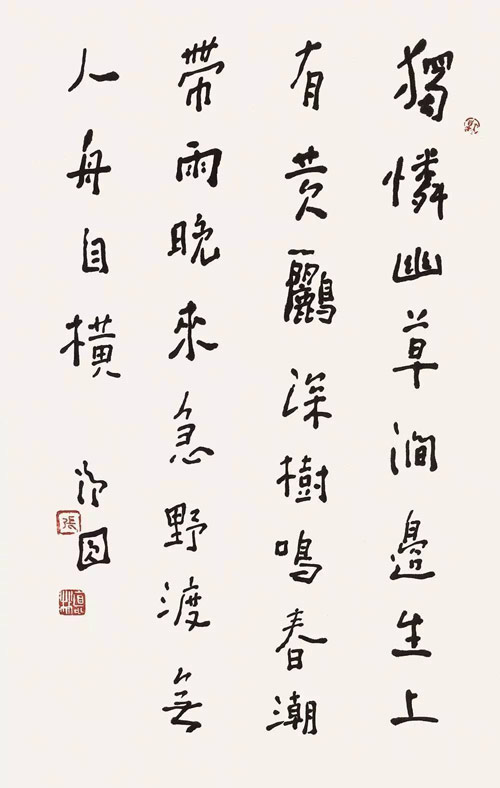 張德林先生,號凈圓,先后師從黃惇、張榮慶、沈鵬諸先生。他曾以四十年之功廣師諸家,于二王一脈書法用功最勤,深得晉唐古法;并上追漢隸碑版得其厚重古樸之氣;兼以修習張旭、懷素、黃庭堅狂草,得瀟灑磊落之姿。先生精研佛典、兼修儒道,將書法與中國哲學的關(guān)系深度融通,主張書法應從法理上與古人相印,而不拘泥于古人樣貌,書寫是當下的關(guān)照與和合,是隨勢生發(fā)、契理契機的。近年來,先生書法逐漸進入了“無我之境,無法之境,無為之境”,在發(fā)掘還原二王筆法的藝術(shù)實踐中做出了極其有意義的探索,且在書法教學的古法傳習上取得可喜的成績。逐漸實現(xiàn)了以本心印證古人、以清凈達于自在、以心法融涵藝術(shù)的清和境界。